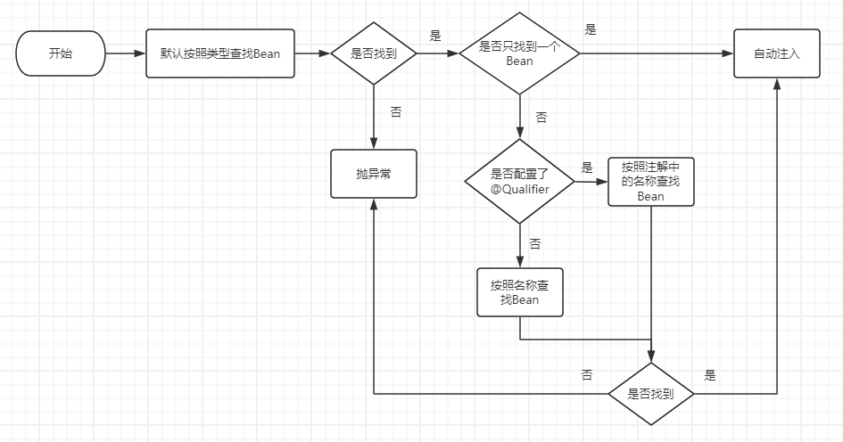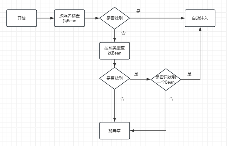 如果根据类型找到了多个bean,则再根据bean的名称进行匹配,如果匹配成功,则注入成功;如果匹配失败,则抛出异常。