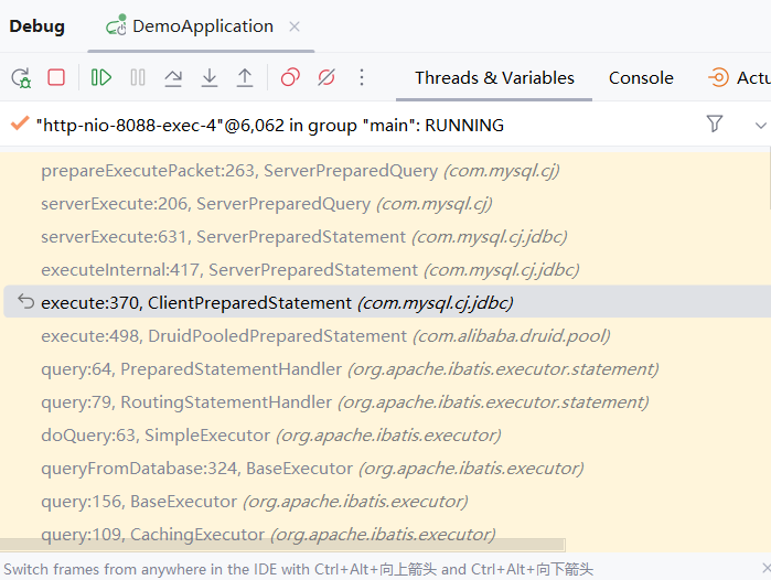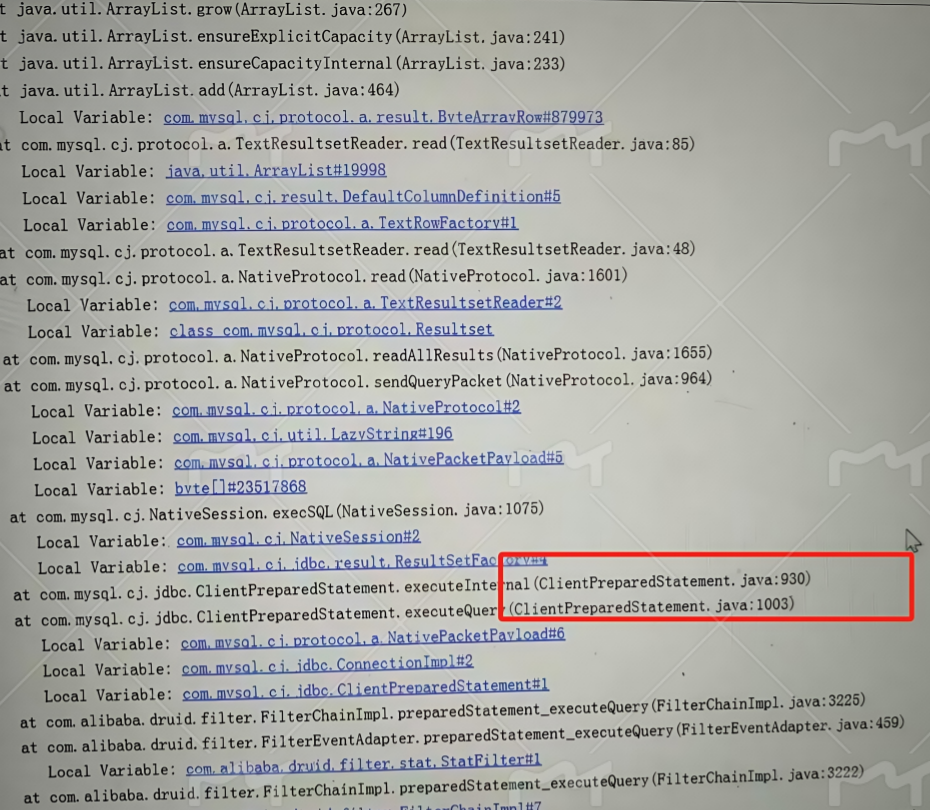 类的方法(下图第3、4行),然后调用ServerPreparedQuery