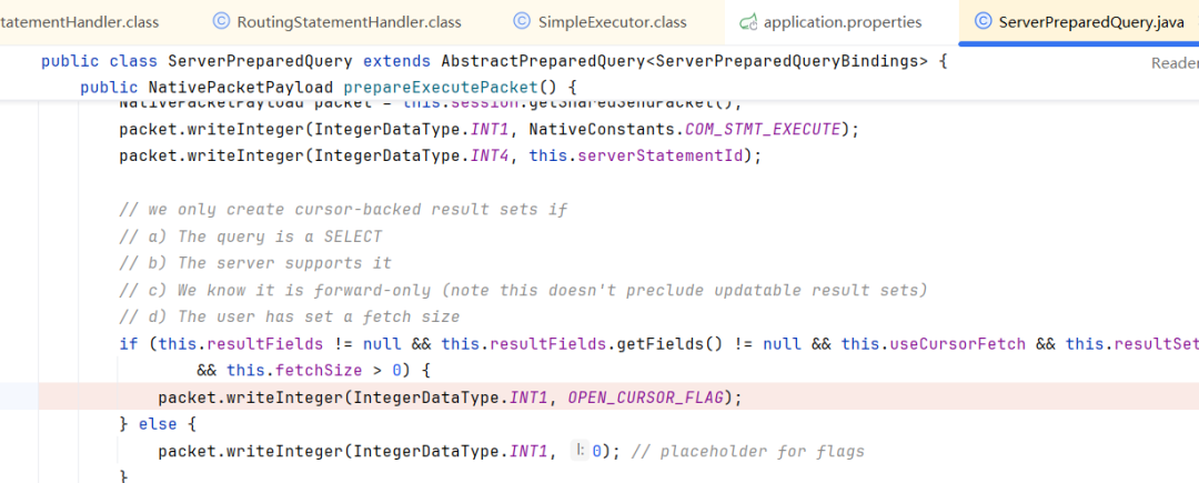 方法中调用了packet.writeInteger(IntegerDataType.INT1, OPEN_CURSOR_FLAG)