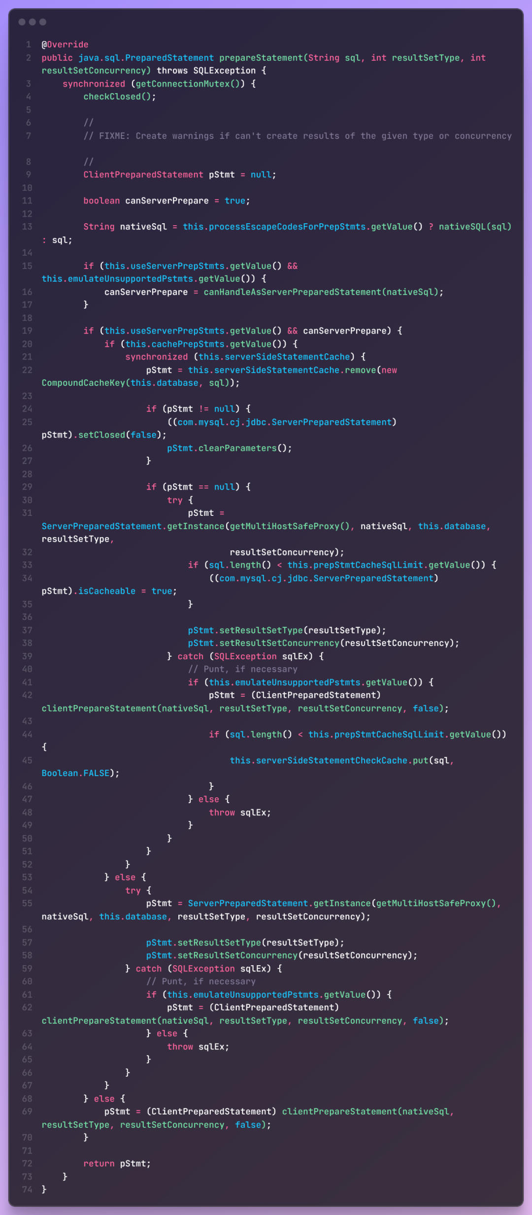 等方法时,JDBC驱动会根据当前的配置和数据库服务器的能力来确定使用哪种PreparedStatement实现。