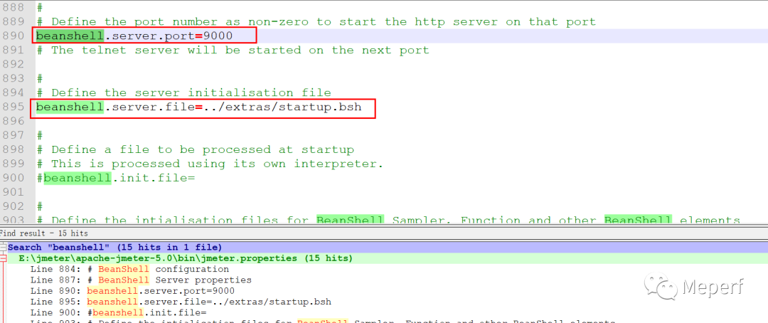 1、修改jmeter.properties文件,启用如下标记的配置项,修改后,启动jmeter时会开启Beanshell服务器,两个端口9000(httpd)和9001(telnet),以支持步骤4中的命令运行。
