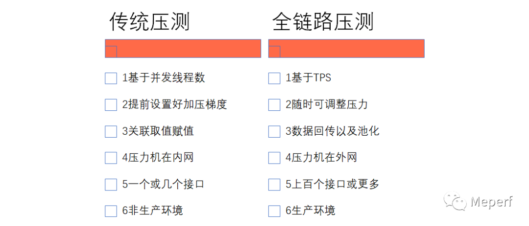 以上区别无先后顺序,也未穷尽,实际区别也可能与你所经历的全链路压测不相同。