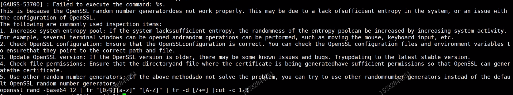 此问题看似是OPENSSL生成随机数的问题,本质上是磐维数据库预安装阶段生成的环境变量文件没有source生效。