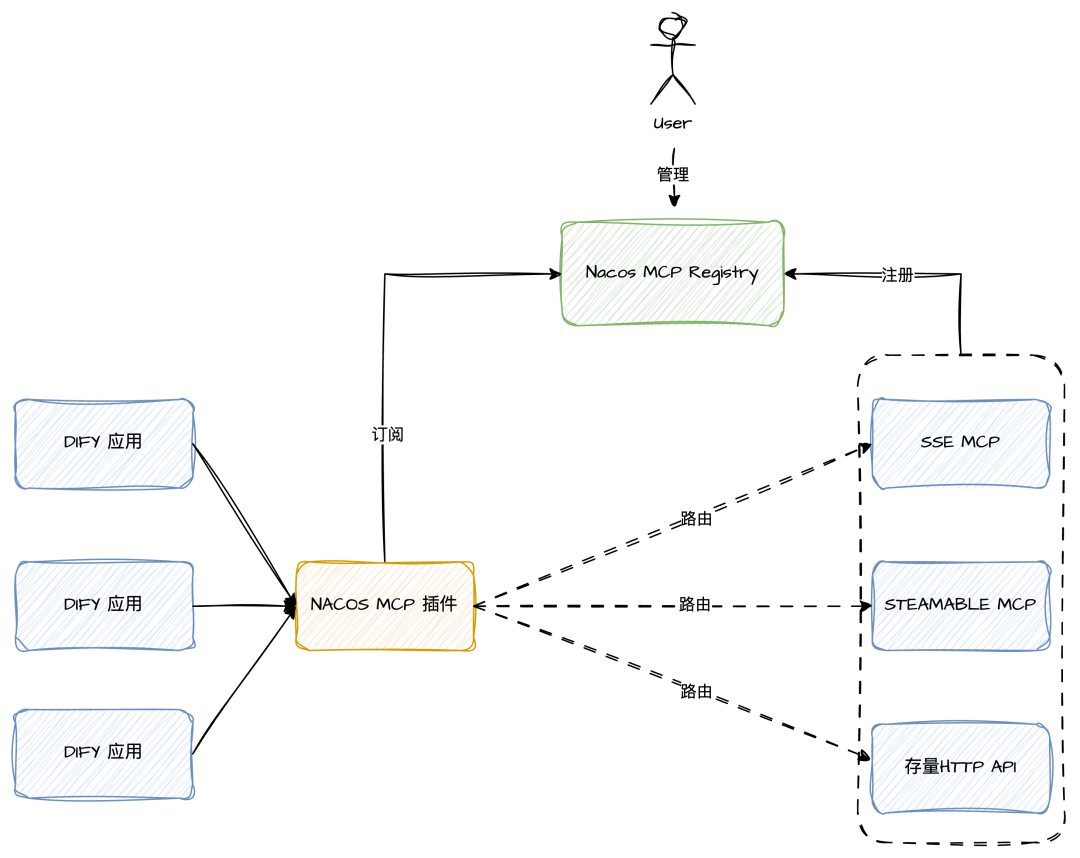 接入琐碎繁杂:每个需要接入 MCP 服务的 Dify 应用都要单独配置 MCP Server 服务的连接信息,缺乏一个统一的集中式管理的平台。 难以动态变更:需要添加新的 MCP Server 或者修改 MCP Server 信息时,都要重新编辑和部署 Dify 应用,变更成本高。