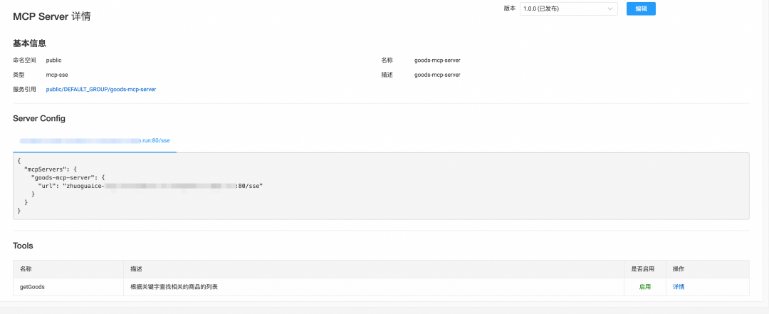 注册完成后,我们可以在 Nacos 控制台上看到对应的 MCP Server 信息: