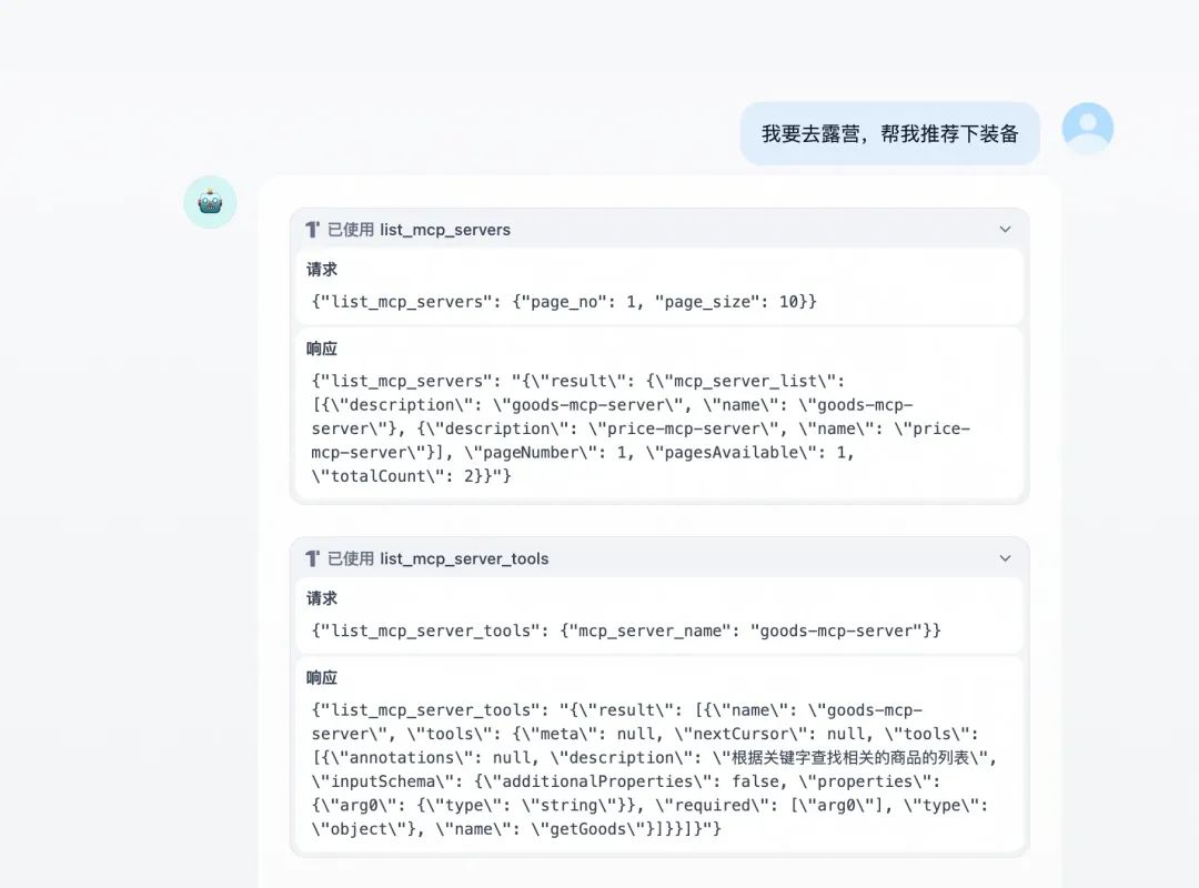 的工具来根据用户提供的关键字返回相关的商品列表,后面根据用户的反馈再接入新的 MCP Server 进行能力的增强。