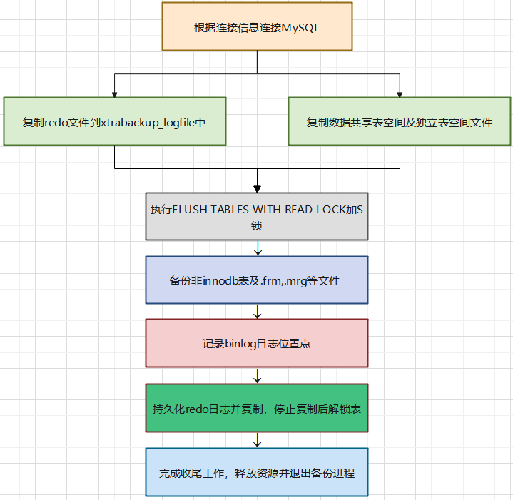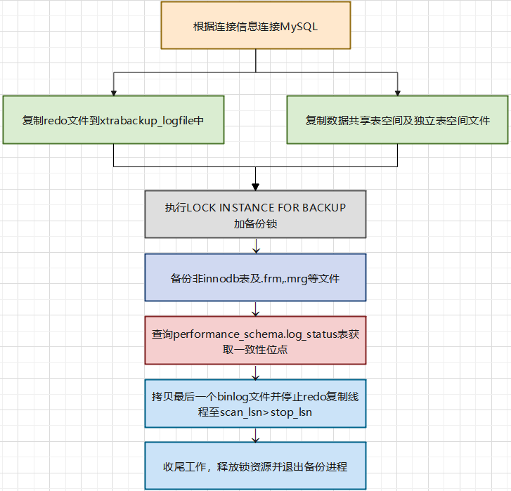 对于8.0.x之前的版本,以xtrabackup2.4为例,备份流程为:
