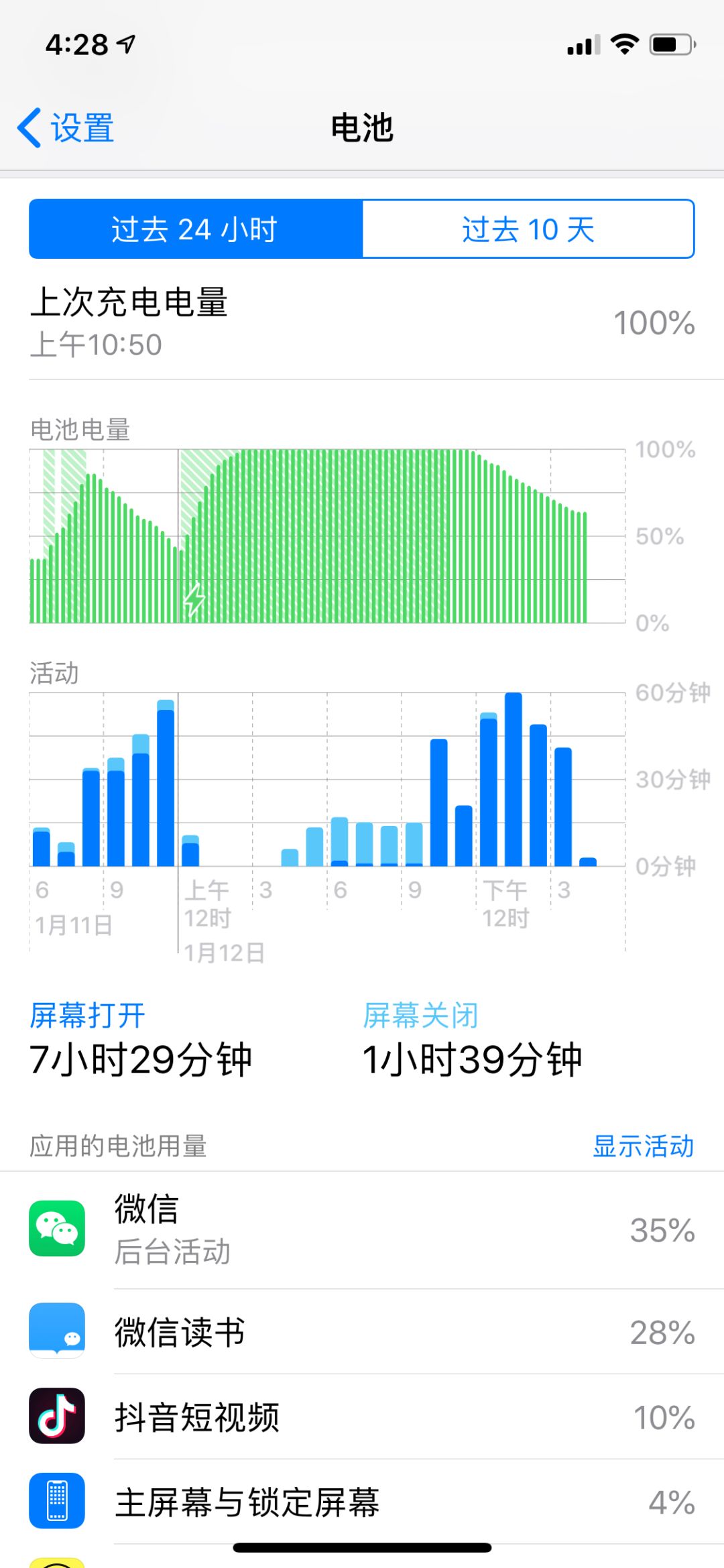 iOS 10系统内置的Setting里可以查看各个APP的电池消耗,系统接口能获取到整体的电池利用率,以及充电状态。