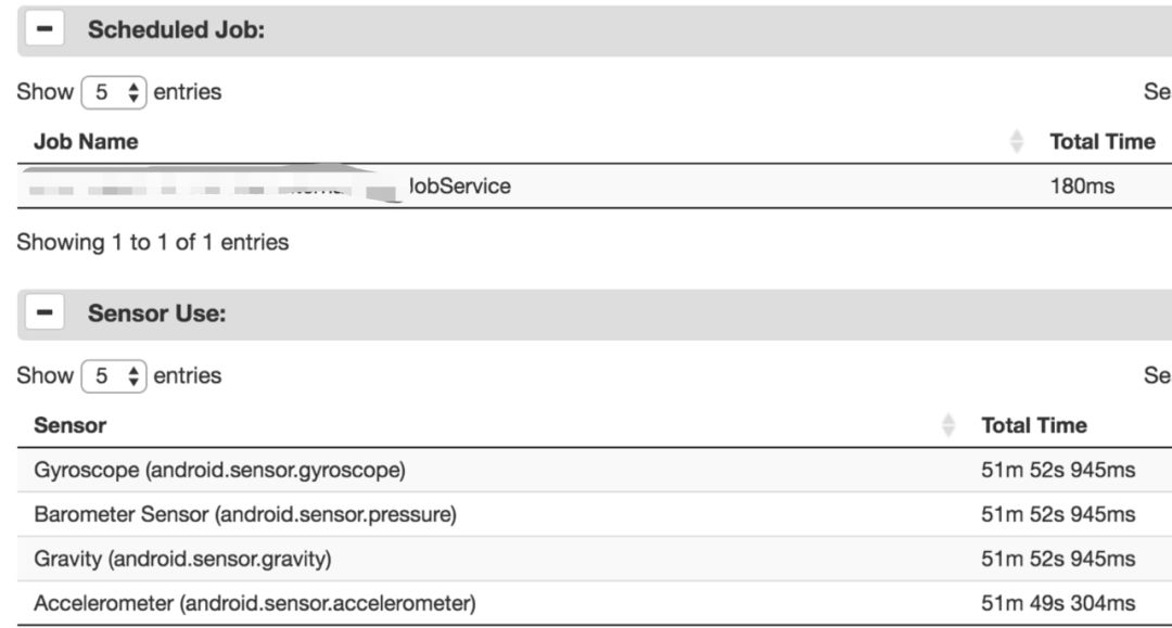 sensor:传感器打开后会导致系统持续监听设备外围环境的数据变化,使用后不及时关闭,会导致耗电;