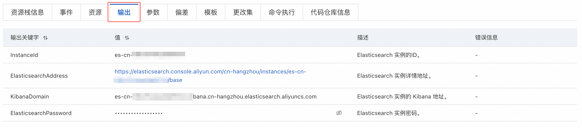 创建 Elasticsearch 实例:前往 ROS一键部署链接[1],系统将自动打开使用新资源创建资源栈面板,并按照如下参数进行配置: