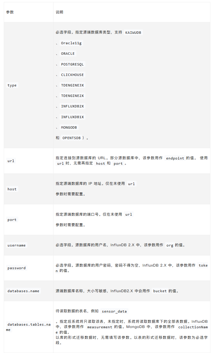 源数据库是 Oracle11g、PostgreSQL、TDengine 或 InfluxDB 且目标数据库是 KaiwuDB,用户可以使用迁移工具迁移表数据,需要提前在KaiwuDB中创建目标表。