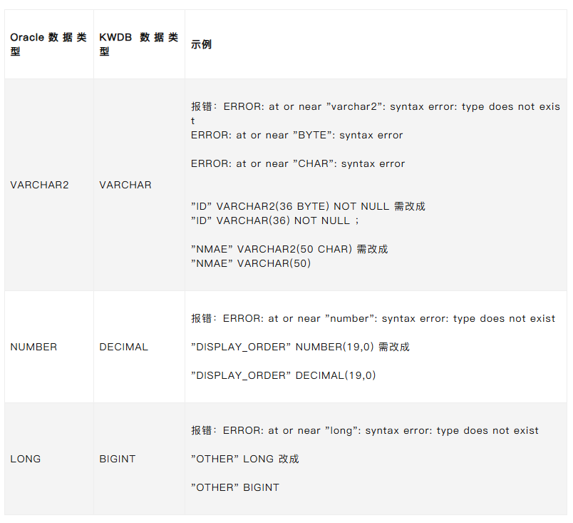 注意:不支持Oracle中CLOB大字段数据类型的迁移,ERROR: at or near “clob”: syntax error: type does not exist