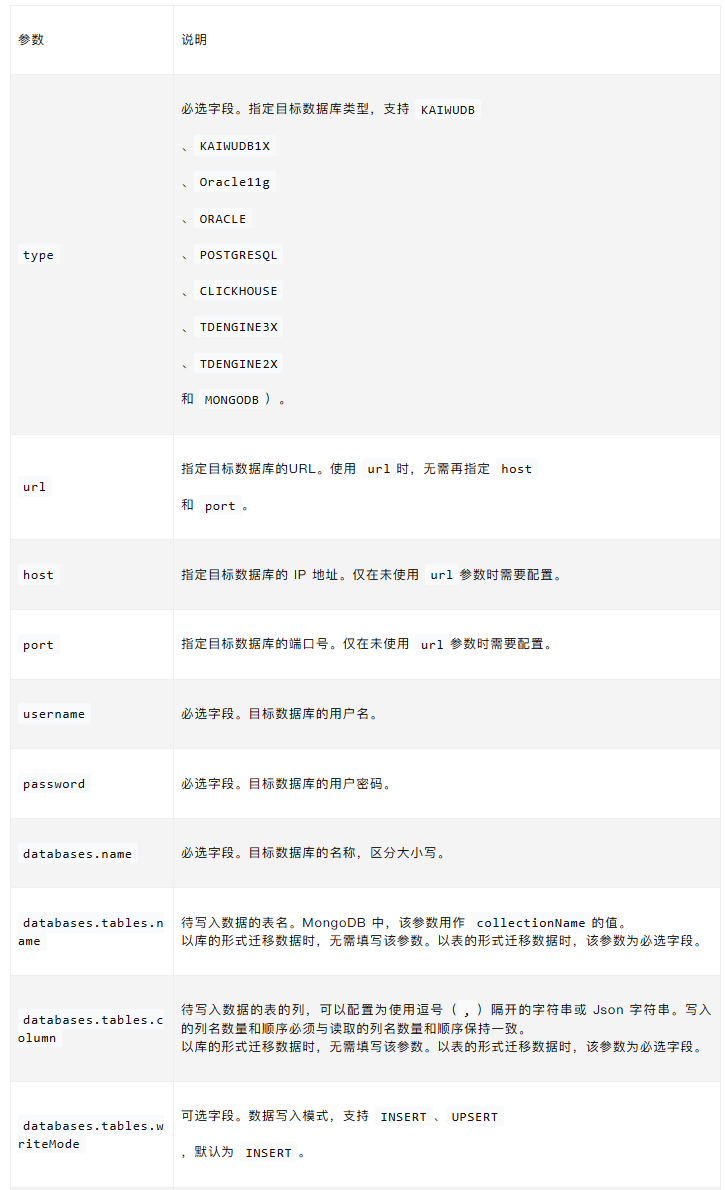 type: KAIWUDB # 目标数据库是 KaiwuDB