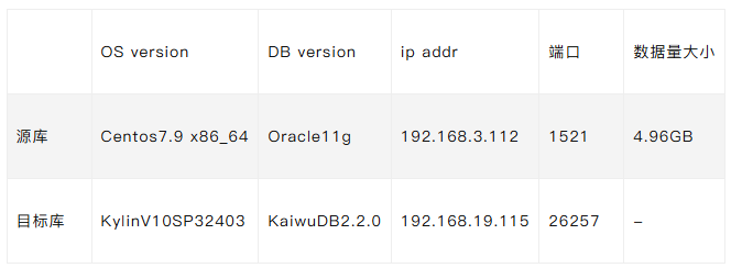 应开发要求,将Oracle11g orcl2实例中业务用户portal的数据全部迁移到KaiwuDB中,源库和目标库详细信息如下: