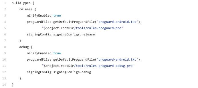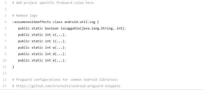 对于发布版本,设置proguard规则将会更加困难,因为几乎每个库都有自己的特定规则。幸运的是,有一个开源代码库 — android-proguard-snippets,它包含所有主要库的proguard规则。
