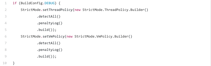 我建议你只在调试的时候打开它并且使用detectAll方法来检测所有类型的问题。