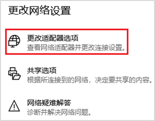 选择“网络和 Internet”,单击“更改适配器选项”: