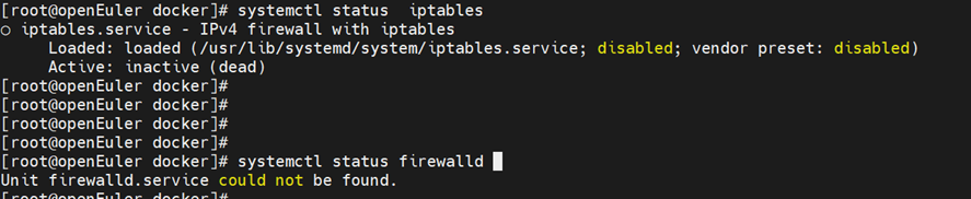 [root@openEuler docker]# systemctl status firewalld 查看火墙状态