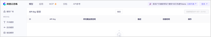 登录https://bailian.console.aliyun.com/?tab=model#/api-key,申请账号,并创建一个API-KEY。