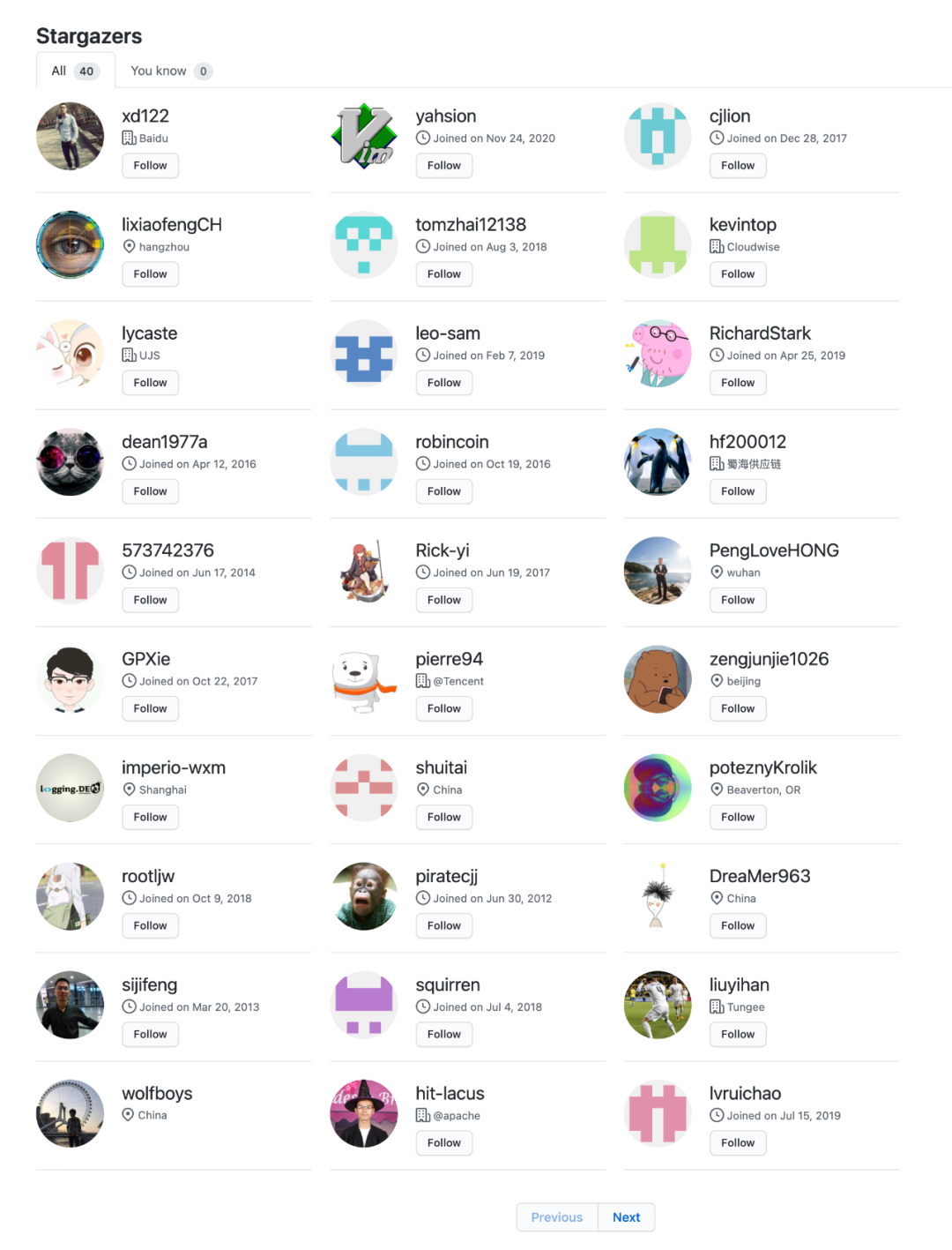特别想感谢最初关注这个项目的 40 位小伙伴。虽然不知道你们是谁,也不清楚你们是如何发现这个项目的,但正是你们最早期的关注和支持,给了我们继续前进的勇气。这份开源之路上的第一份温暖,至今难忘。