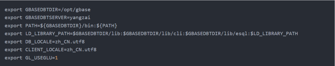 • 以gbasedbt用户身份登录,并设置以下环境变量: