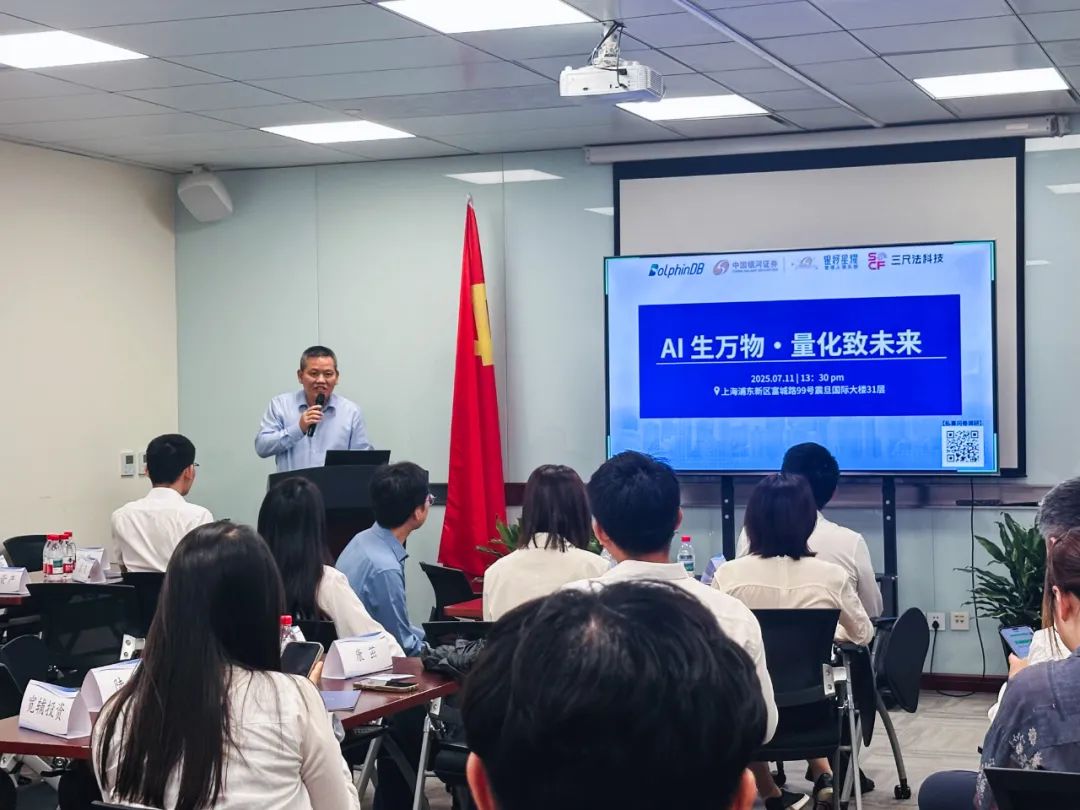 7月11日下午,由 DolphinDB 、中国银河证券主办,三尺法科技协办的“ AI 生万物·量化致未来” D-Day 系列行业交流会在上海成功举行。活动围绕中高频量化、智能交易与私募发展展开,吸引了来自私募、行业专家及科技企业的众多专业人士,共同探讨量化时代下的技术变革与行业未来。活动伊始,中国银河证券上海分公司总经理陈小其发表致辞,他表示,银河证券一直致力于构建行业生态圈内有效的交流平台,通过沙龙等活动形式将行业中的投资人、技术专家、合规人士及服务机构有效联结。他特别感谢 DolphinDB 和三尺法科技对本次活动的支持,并指出,行业间的协同与开放将是推动量化投资不断进化的关键力量。DolphinDB 创始人兼 CEO 周小华博士随后指出,当前量化技术的不断演进,特别是在中高频领域,对底层数据处理与计算能力提出了极高要求。作为底层技术提供方,DolphinDB 愿与券商、私募、生态合作伙伴一道,持续探索行业共赢的合作模式,共同打造技术创新与场景应用的桥梁。中国银河证券 财富管理总部 私募同业客户部负责人 盖彬