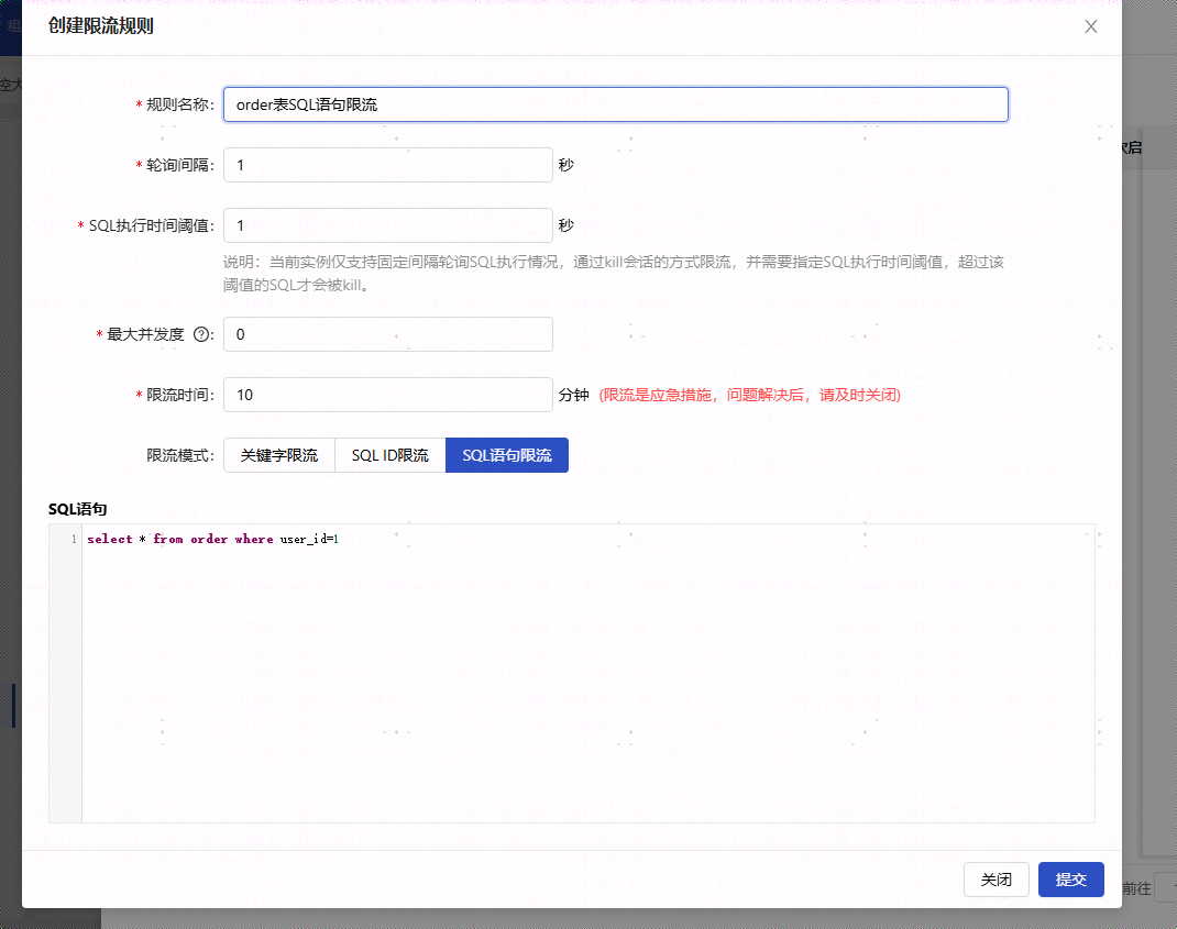 新功能新增SQL限流功能:通过控制SQL语句的并发执行数量或频率,防止数据库因高并发访问而出现性能瓶颈或服务不可用;