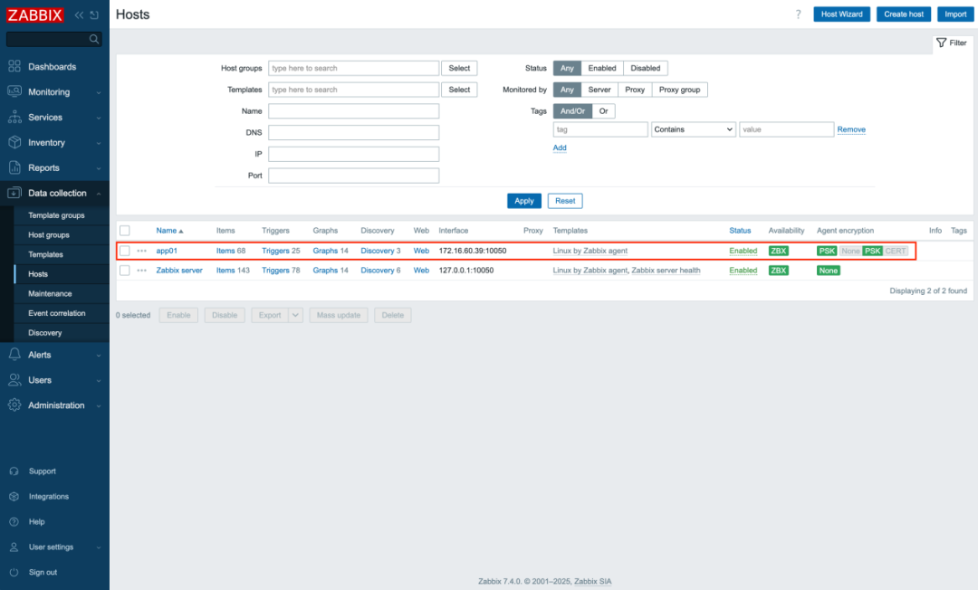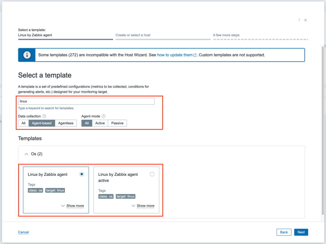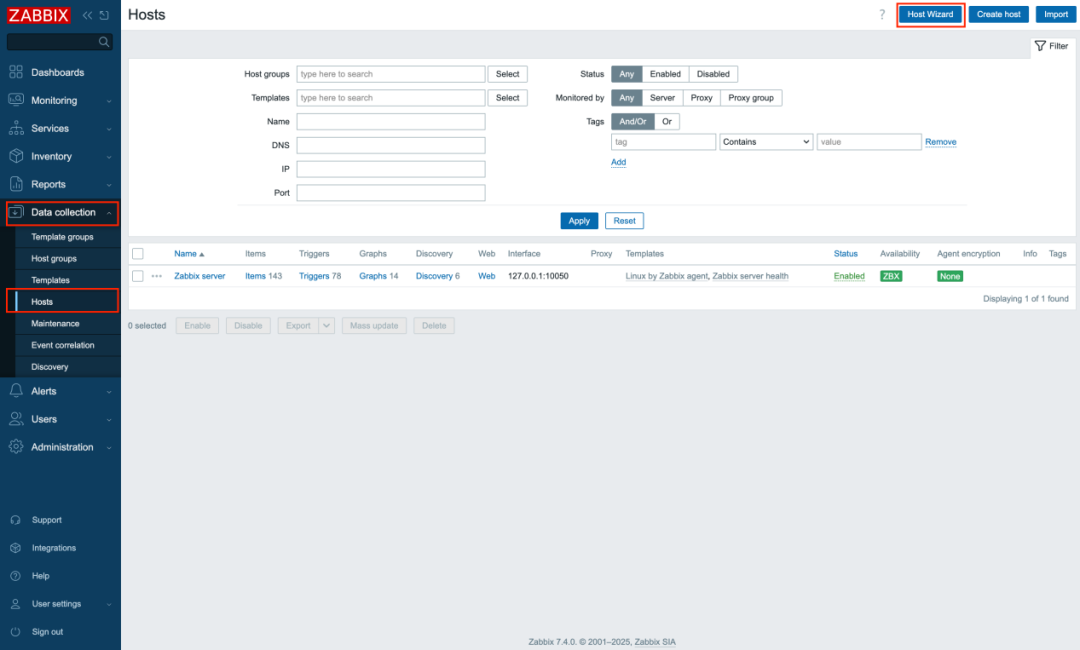 Zabbix 7.4 版本增加了主机向导,用户可通过向导方式完成zabbix agent安装、模版关联、主机添加等操作,简化了新主机或现有主机的配置。