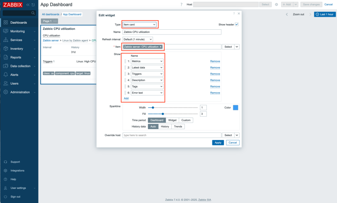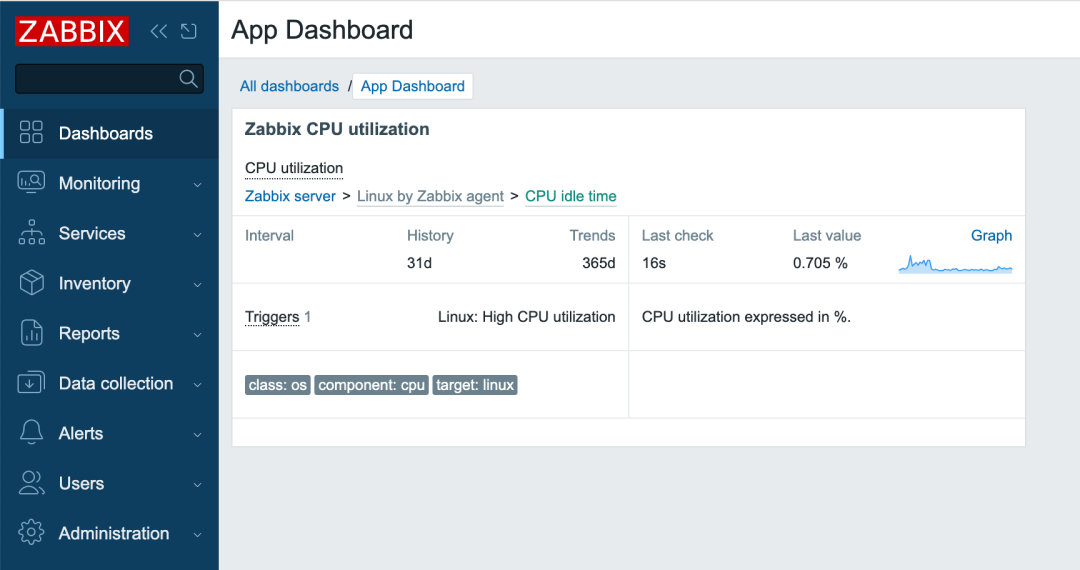 此外新版本还增加了History 小组件,Item的历史数据也可在Dashboard中展示,方便查看历史指标。