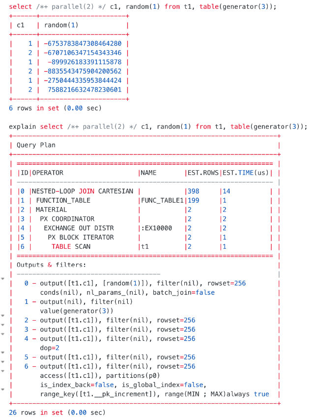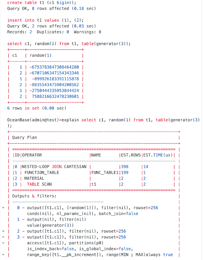 随机函数、Table generator 语法同时适用于 MySQL 模式和 Oracle 模式。