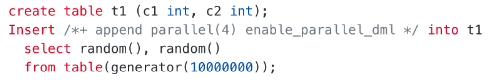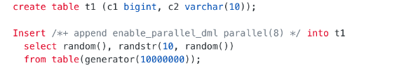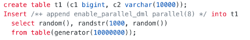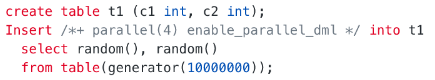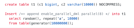 配合并行DML(PDML)可以加速数据插入速度:
