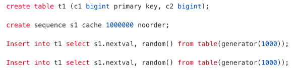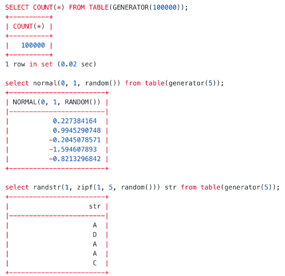 insert into t1 select random(), randstr(1000, random()) from table(generator(1));查看所生成的随机数