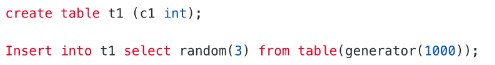 insert into t1 select random(3) from table(generator(10));