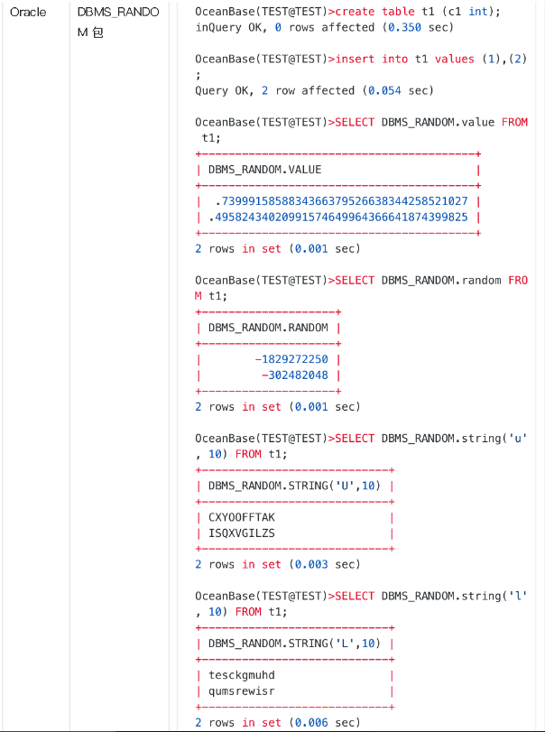 2.虽然 Oracle 包提供的随机函数是比较丰富的,但是目前因为实现缘故,在大批量数据插入场景使用 DBMS RANDOM 包有比较大的性能开销。