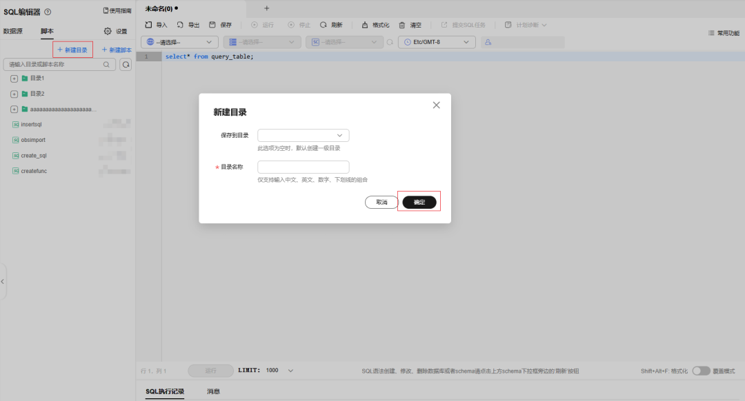 目录名称:设置目录名称,仅支持输入中文、英文、数字、下划线的组合。