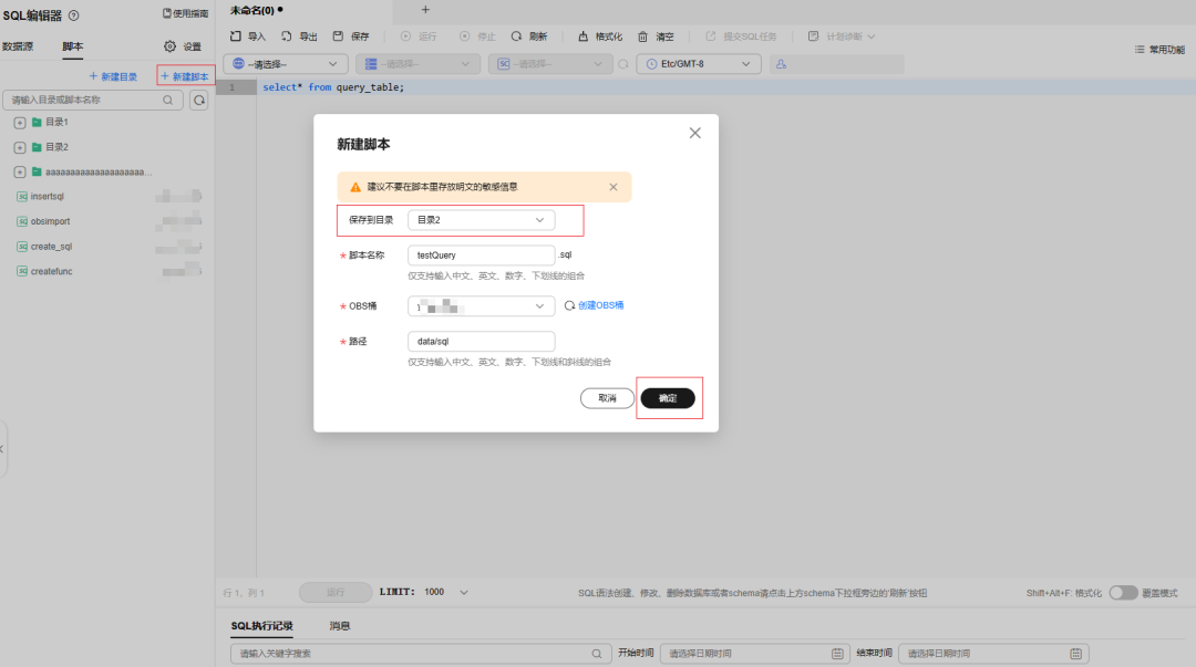 说明:脚本可以挂载在目录下去创建,也可以不挂载目录直接创建,创建脚本数量没有限制,脚本内容实际上是保存到OBS路径地址下。