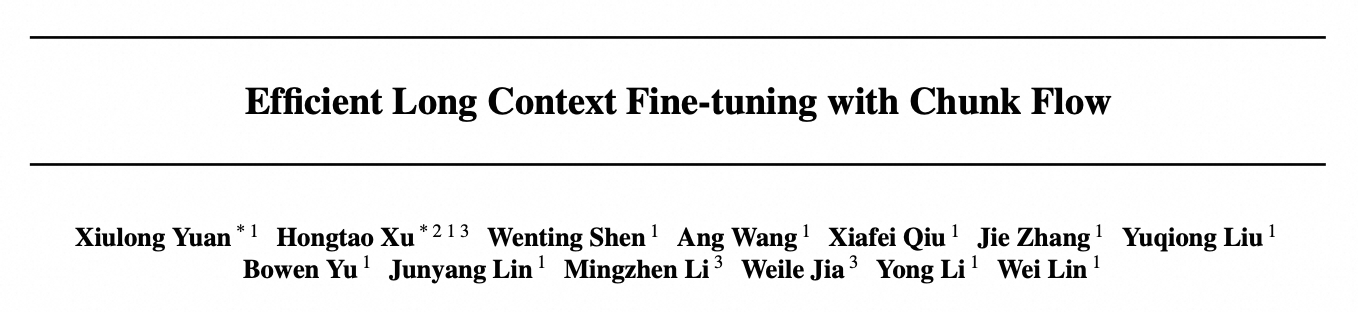 近日,阿里云 PAI 团队、通义实验室与中国科学院大学前沿交叉科学学院合作在机器学习顶级会议 ICML 2025 上发表题为 Efficient Long Context Fine-tuning with Chunk Flow 的论文。机器学习国际会议 (ICML) 是致力于推动人工智能分支机器学习的专业人士的重要聚会,是人工智能领域的顶级学术会议之一。ChunkFlow 做为阿里云在变长和超长序列数据集上高效训练解决方案,支撑着通义千问 Qwen 全系列模型的长序列续训练和微调任务,在阿里云内部的大量的业务上带来2倍以上的端到端性能收益,大大降低了训练消耗的GPU卡时。Qwen2.5 系列模型性能测试结果表明,ChunkFlow 相较于其他框架,训练的端到端性能有最高4.53倍的提升。