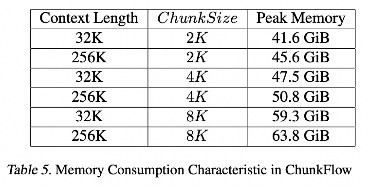 同时,我们测试了不同ChunkSize的设定对训练过程中显存侧的影响,如下图,ChunkFlow可以做到可控的峰值显存占用,使得训练所需显存和预设的ChunkSize相关而不是与训练数据中的最长序列相关,大大提升了训练过程中的鲁棒性。