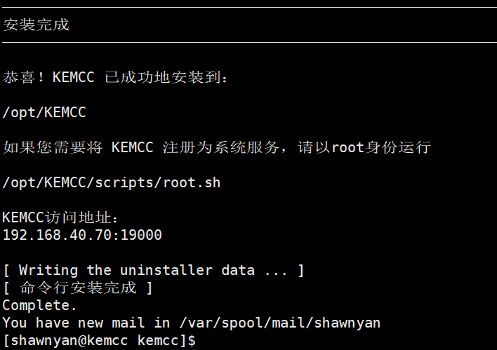 执行安装脚本,推荐使用 kemcc 用户,方便管理。