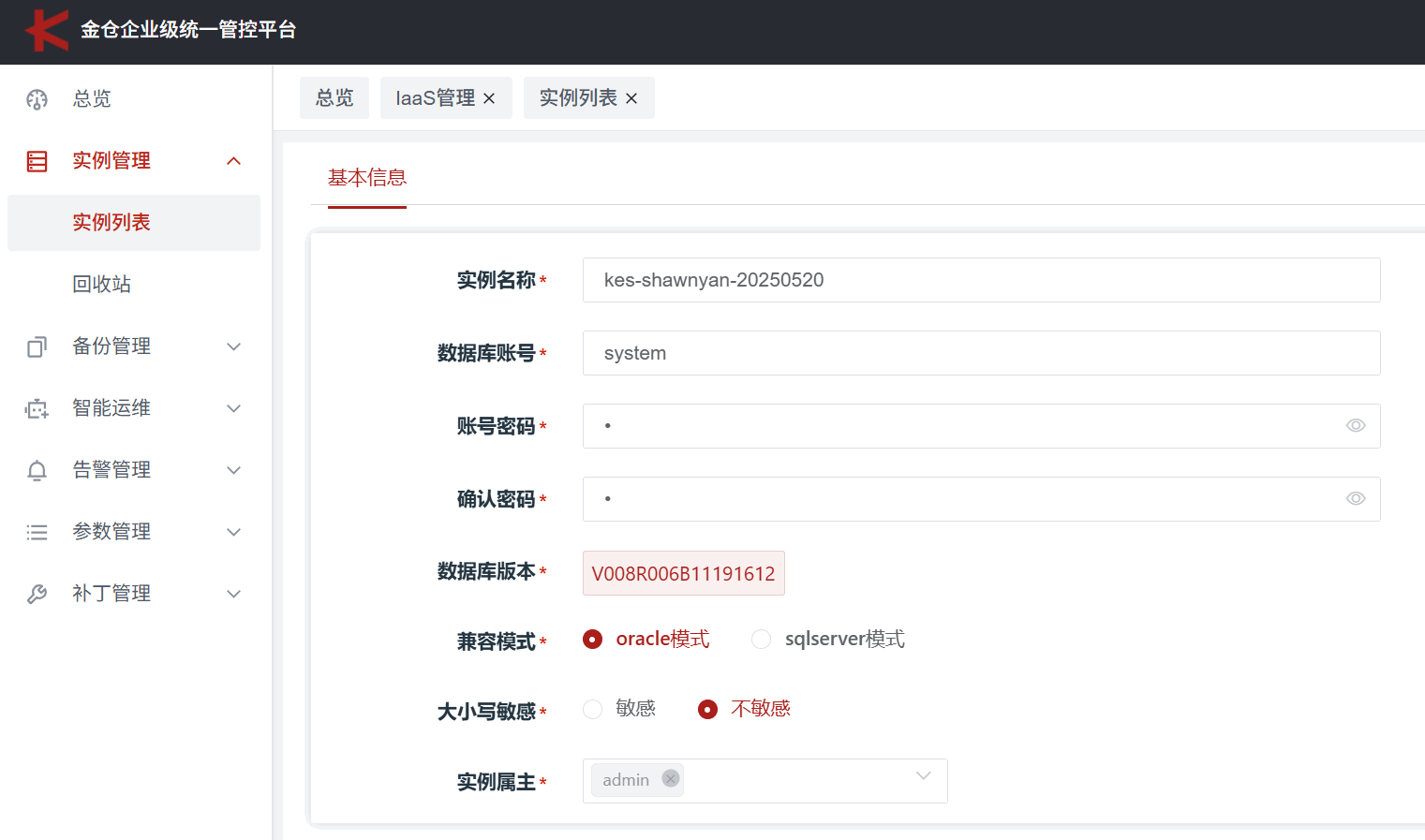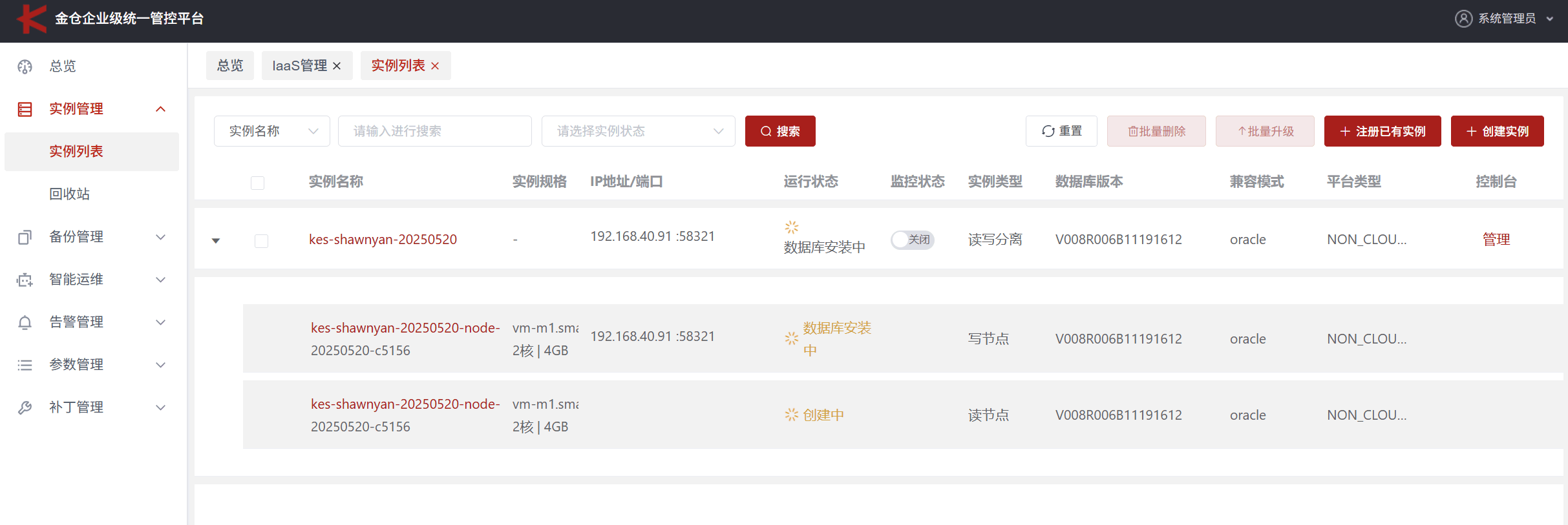 在【实例列表】菜单中,用户既可以注册已有实例,对现有数据库进行纳管,也可以创建新实例。