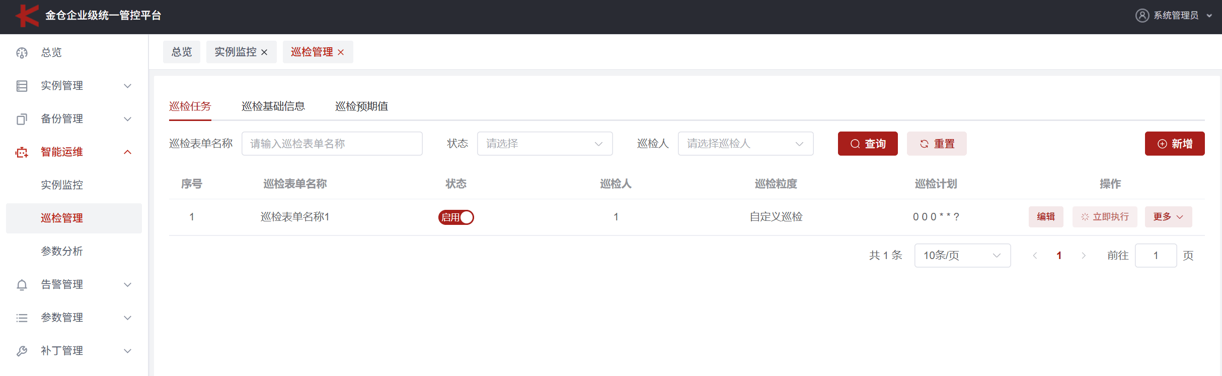 KEMCC 的巡检管理功能为用户提供更多维度的运维支持。用户可以创建巡检任务,设置巡检周期和检查项,系统将自动执行巡检并生成报告,帮助用户深入了解数据库的运行情况,提前预防潜在风险。