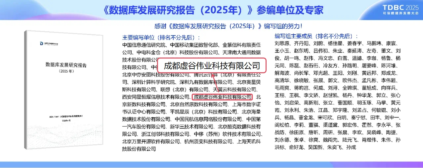 虚谷伟业作为核心参编单位,委派明玉琢、马攀、黄元霞三位技术专家深度参与了报告编写工作,结合自身技术迭代和实践经验,为数据库产业研究献言献策。