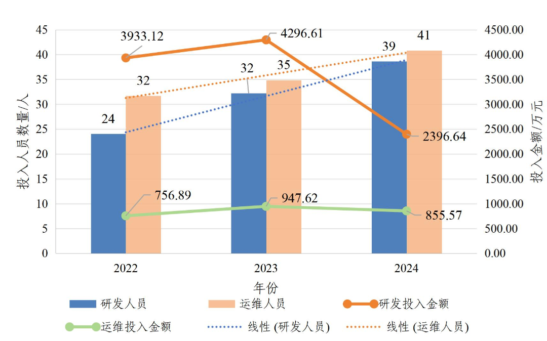 图 7 2022-2024年重点行业头部用户研发/运维人员数量和投入资金变化