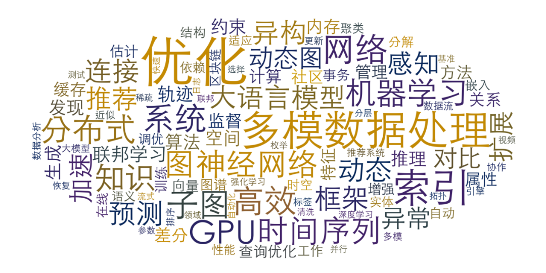 图 8 2024 年 VLDB、 ICDE 和 SIGMOD 论文关键词云图