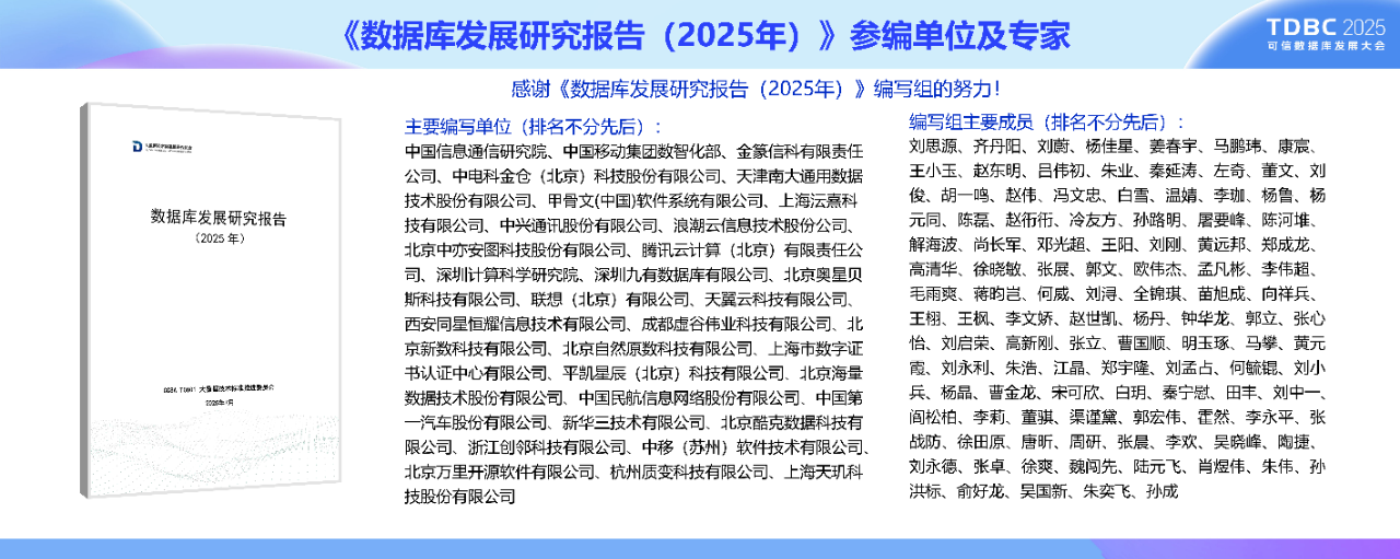关注本公众号(大数据技术标准推进委员会)并回复“2025数据库报告”获取电子版《数据库发展研究报告(2025年)》和解读PPT。