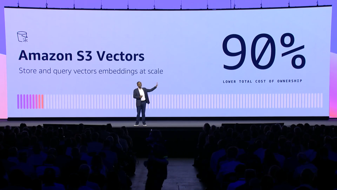 Amazon S3 Vectors是首个原生支持AI工作负载向量处理的云对象存储服务。借助S3 Vectors,客户在存储和查询向量数据时可将成本最多降低90%,相比传统方法更具性价比。这使企业能够以更低成本保留并利用大规模向量数据集,以增强AI效果以及S3数据的语义搜索结果。该服务可与Amazon Bedrock Knowledge Bases和Amazon OpenSearch Service集成,进一步简化并降低RAG及向量搜索操作的成本。