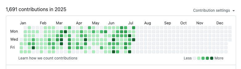 我最近一直在用 Claude Code 写代码。半年刚过,提交数已经超过了去年全年。
