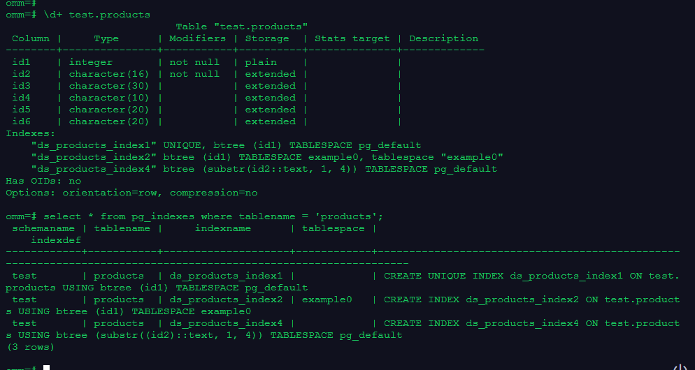 4.使用\d+和系统视图pg_indexes查看索引信息