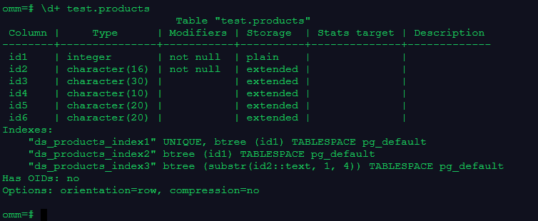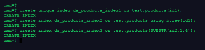 create unique index ds_products_index1 on test.products(id1);
