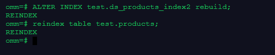 ALTER INDEX test.ds_products_index2 rebuild;